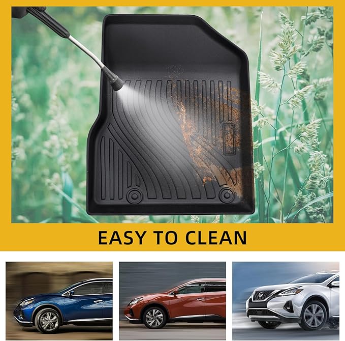 - 【PERFECT FIT】 - The floor mats will be perfectly compatible with Nissan Murano 2017.5 2018 2019 2020 2021 2022, the design data are all from precise scanning, fit perfectly like a glove, and will not get stuck on the accelerator and brakes.The rubber car mats includes front & rear row full set. 3D custom-designed and fit edges to effectively prevent sediment infiltration.
