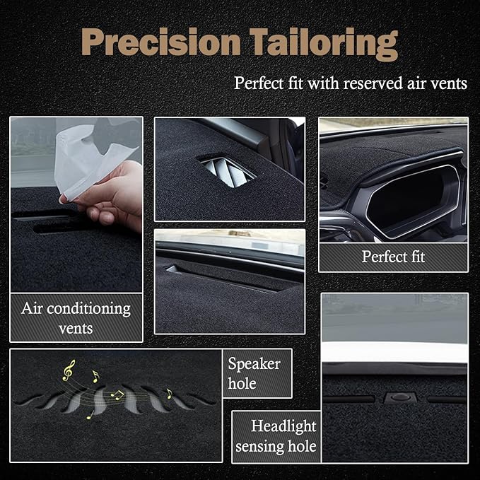 - ๐๐๐ใCustomized Designใ- Laser cutting, customized car mold opening, perfect fit, and the fine stitching is suitable for the arc of the original car. All defrost and AC vents are pre-cut. The back of dashboard cover mat is made of non-slip silicone particles, also equipped with Velcro, which further strengthens the fixing.