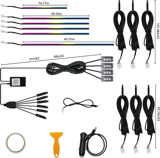 - ๐2 in 1 Lighting Source: AMKI LED interior car lights consists of two parts: LED light strip + acrylic optical fiber, the lighting is more stable and softer than most single-light source led car interior lights on the market, make your car stand out in unique style with creative freedom.