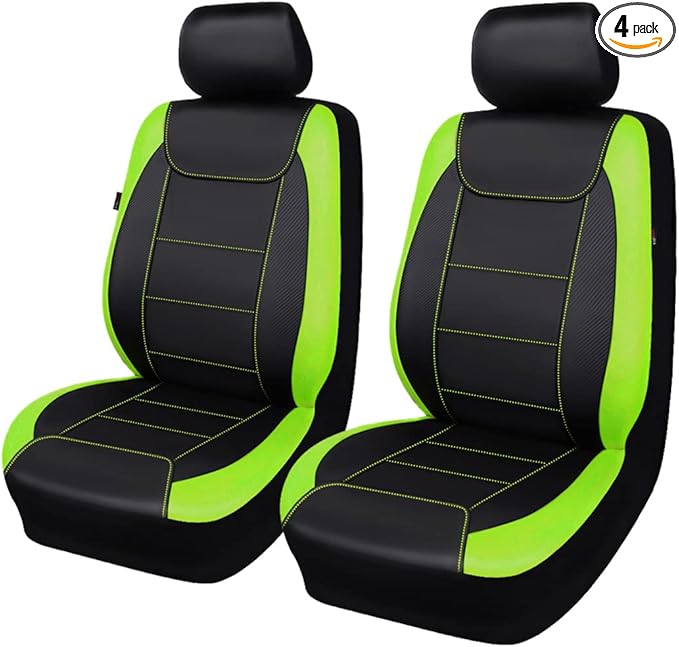 Flying Banner car seat Covers Protects Water Proof Faux Leather Carbon Fiber Fronts Fluorescence Green Black (Fluorescence Green Black, Front Pair)