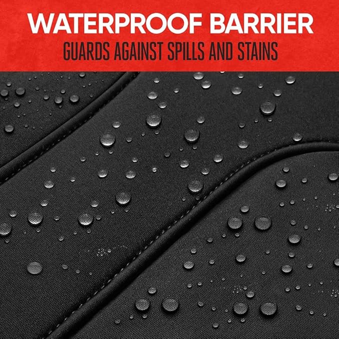 - WATERPROOF NEOPRENE LINING: The backseat split bench cover features a waterproof neoprene foam lining, ensuring maximum protection against accidental spills. Ideal for both cars and trucks, this durable seat cover for car keeps your rear seats safe from liquid damage, offering peace of mind and long-lasting protection. The back seat protector is perfect for those looking to protect their vehicle's interior from water, stains, and everyday wear.