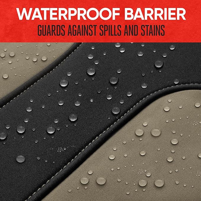 Motor Trend AquaShield Waterproof Beige Rear Split Bench Seat Covers for Trucks Rear Seat Cover Only - Black Car Seat Covers, Back Seat Cover Only - Durable Neoprene Spill Resistant for Kids & Dogs