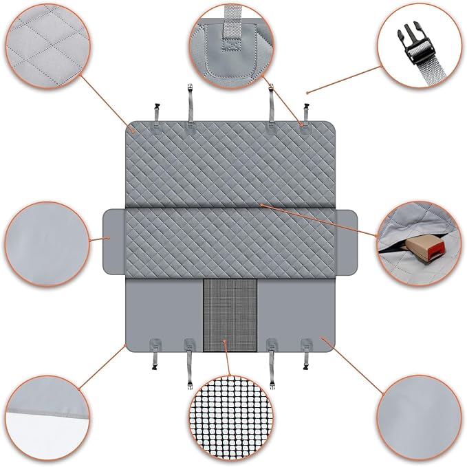 - [ PREMIUM MESH VISUAL WINDOW ] Exclusive dog car seat cover with car net bring extra view space and safe driving. View mesh divider as a vent helps your pets to get air circulation, and you can see them easily, reducing their anxiety.