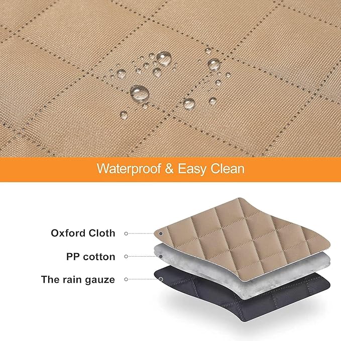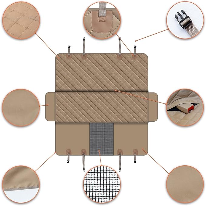 - [ Waterproof-Scratchproof & Durable Materials ] Our car seat covers for dogs are crafted with the top layer of heavy-duty 600D oxford and the mid-layer of sturdy 210D oxford canvas padded with soft stuffing to protect your backseat from scratches, fur, and hair to achieve long-lasting use. And the waterproof coating on each layer creates an impenetrable waterproof barrier between your seats and mud.