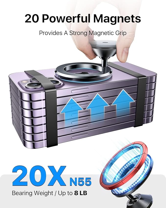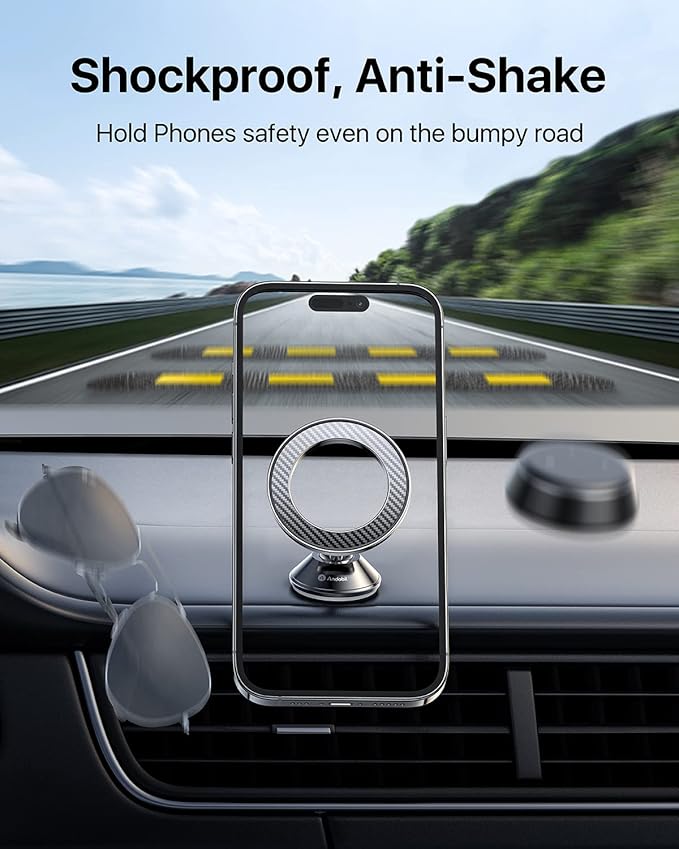 - [The Most Stability, Never Fall Off] - The andobil Magnetic phone holder uses 20 N55 powerful magnets and a metal full body. With an andobil magnetic phone holder car, Your phone remains firmly anchored even on bumpy roads, ensuring a worry-free drive