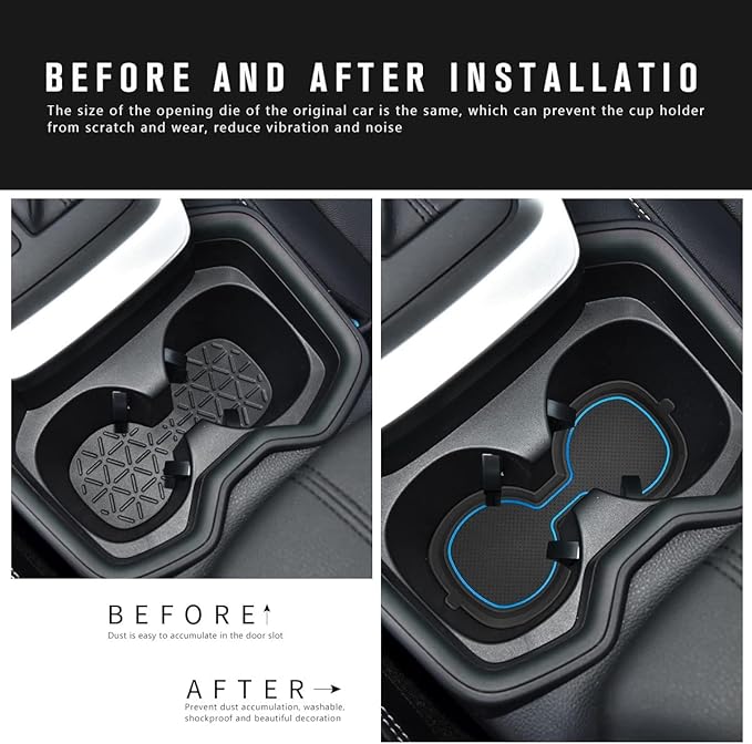 - 【DECORATE YOUR CAR】Color: Blue Trim. 3D Cup Holder Inserts for Toyota RAV4 Accessories 2019-2025 give a new look to your vehicle interior with these cup holder inserts on. Adds a nice pop of color. Great way to keep car clean. Protect your car cup holders from dirt and scratches. It will reduce rattling sound caused by small things like keychain or coins while driving.