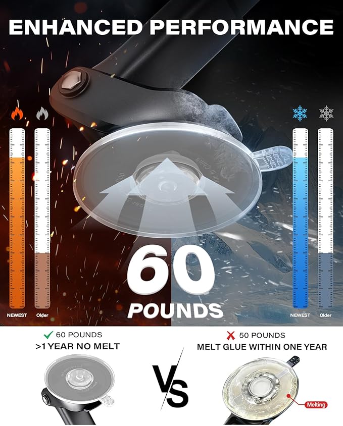 - Ultra-Strong Suction Cup: The heavy-duty suction cup of our magnetic car phone holder adheres firmly to dashboards (use with the included 3M pad) and windshields (use with the included UV reflective film), offering a stable and reliable grip on various surfaces. For optimal adhesion, we recommend waiting at least 12 hours after installation before use