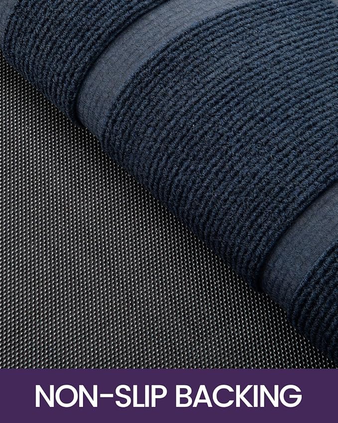 DEXI Front Door Mat Outside Entrance, Heavy Duty Rubber Backed Doormat, Stain and Fade Resistant, Low-Profile Easy Clean Entryway Floor Mats, 4x2, Rectangles Navy