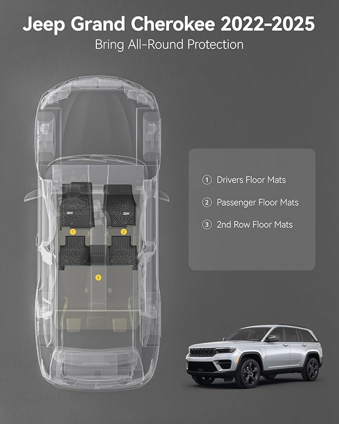 - PERFECT FIT FOR GRAND CHEROKEE 2022 2025: Custom fit design edge to edge for maximum coverage and protection with TPE (thermoplastic elastomer) material which ensures your more strength, resilience, durability and elasticity, this floor mats is matchable with jeep grand cherokee.