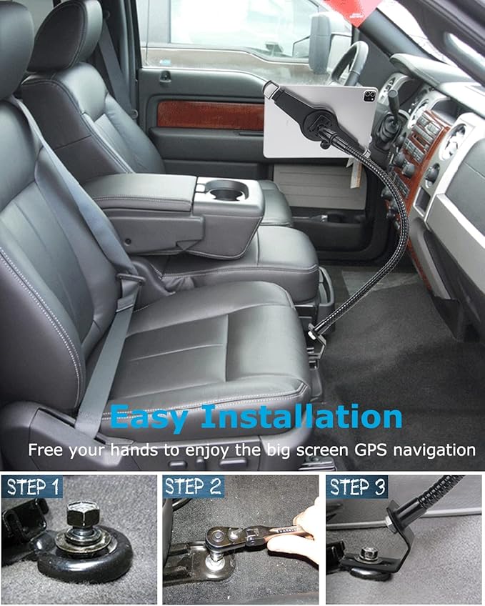 - 【Suitable for Large Vehicles】Steel coil 19.7 inch gooseneck firmly connected to most passenger seat rail bolts. Steel keeps the device firmly in place with low vibration while allowing it to be quickly and easily repositioned. This ultra-long metal arm makes it very suitable for use in large vehicles such as heavy duty truck, pickup truck, work truck, semi truck,Taxi, SUV and ect.