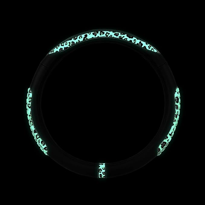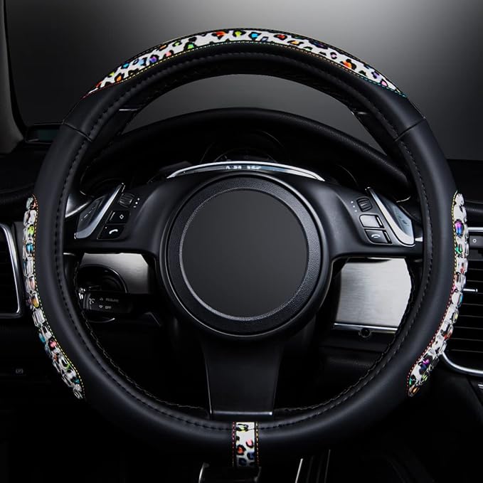 Flying Banner car Steering Wheel Cover Gel Massage Velvet Cool Warm Universal Size 15 inches SUV Truck Anti Slip Odorless Summer Winter (Black Leopard, Gel Massage)