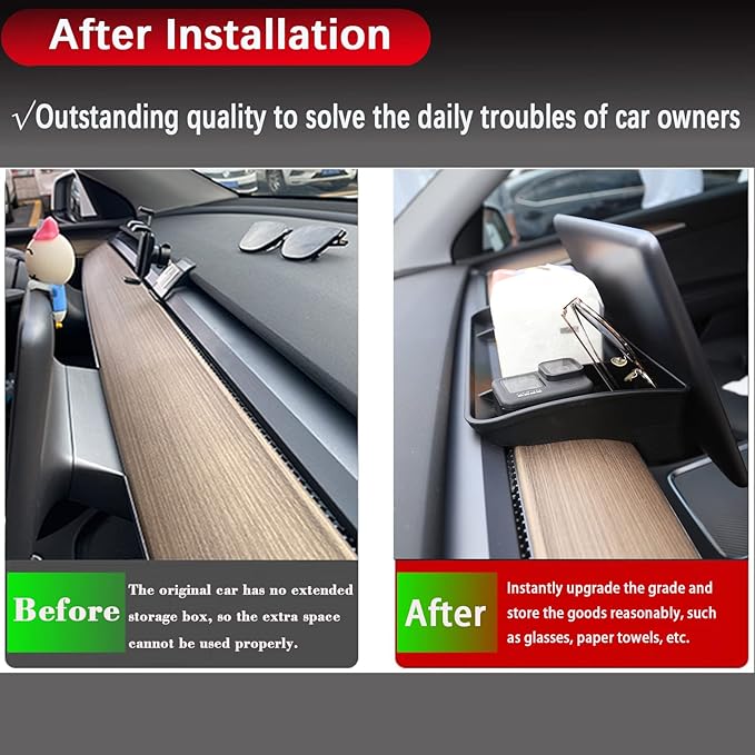 - Hidden Storage: The dashboard tray for Tesla uses the idle space behind screen, add more storage tray space for car. silicone tray can store tissue, keys, watches and pass cards, etc, improves the tidiness of the car.
