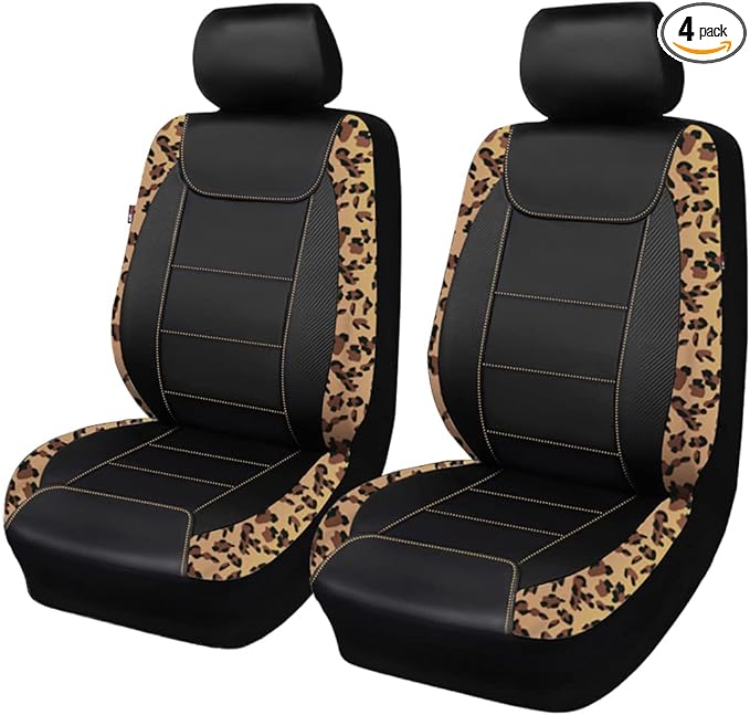 Flying Banner car seat Covers Protects Leopard Printing Velvet Faux Leather Carbon Fiber Front Pair Carbon Fibre (Leopard Black, Front Pair)