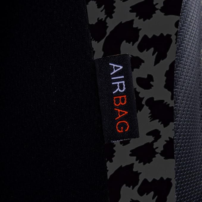 Flying Banner Carbon Fiber Leather Vehicle Seat Covers, Leopard Gray Black, Universal Fit - 8PCS