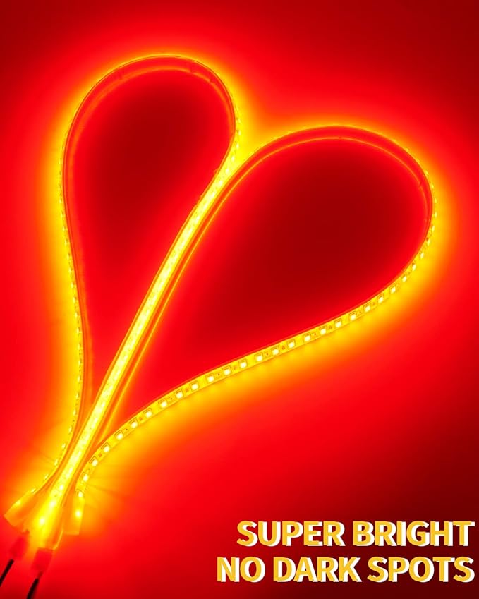YM E-Bright Car Led Strip Lights Cuttable Underglow Led Ambient Lighting for Motorcycle Trucks Van Boat Golf Cart Interior Exterior Waterproof IP68 24inch 60CM 72SMD 12v,Red(Pack of 4)