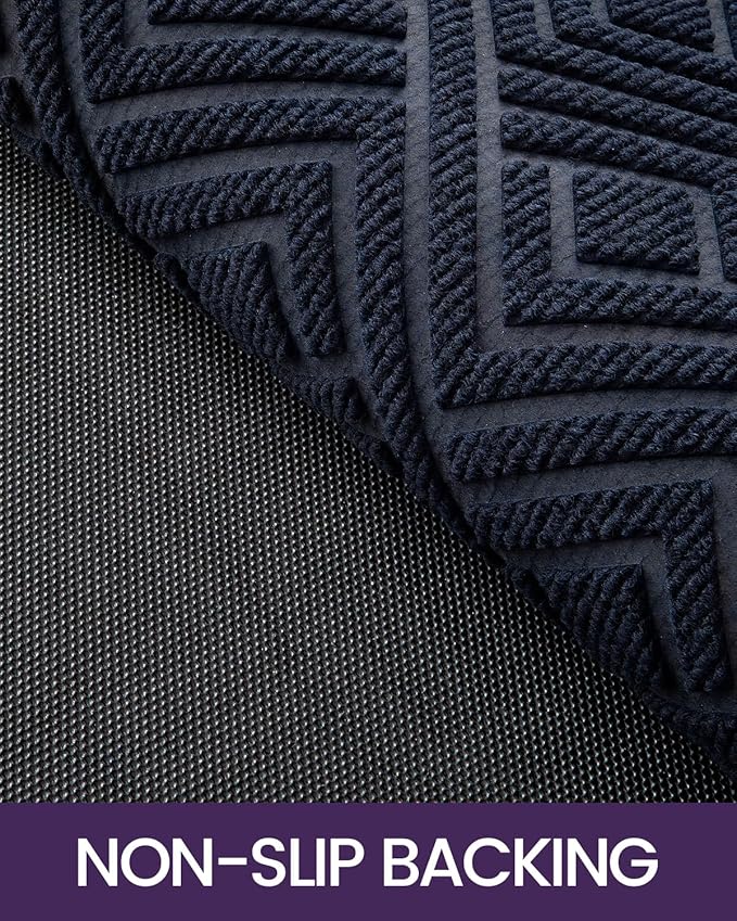 DEXI Front Door Mat Outside Entrance, Heavy Duty Rubber Backed Doormat, Stain and Fade Resistant, Low-Profile Easy Clean Entryway Floor Mats, 2x3, Checkered Navy
