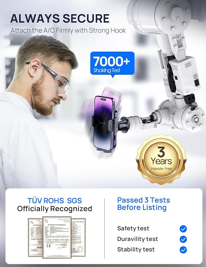- Powerful Stability: Upgraded vent hooks and third-generation phone clamps form a strong locking ability, with a weight capacity force of up to 52 pounds, firmly grasping the vent and your phone, stable as a rock, not afraid of rough roads and bumps. Even on non-paved roads, it will not stop working; it is the best choice for most cars, pickups, SUVs, trucks, and taxis; it is also a good assistant for Uber and Lyft drivers.