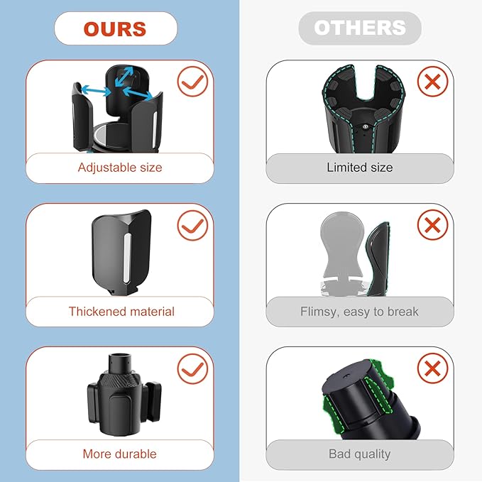 - SAFER AND MORE STABLE - The three upper clips are made of thickened high quality ABS, increasing the height to 3.52" (higher than comparable products and more stable). At the same time the non-slip rubber gasket on the inside of the cup holder holds the cup securely in place so that it does not tip over or spill while driving.