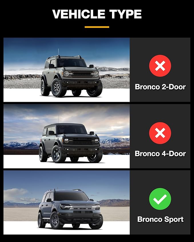 - : Vehicle Service Type 2021 2022 2023 2024 2025 Ford Bronco Sport Badlands/Base/Big Bend/First Edition/Heritage/Outer Banks, Not for Ford Bronco & Rubberized Floor 2021 2022 2023 2024 2025 Ford Bronco Sport Badlands/Base/Big Bend/First Edition/Heritage/Outer Ba… See more