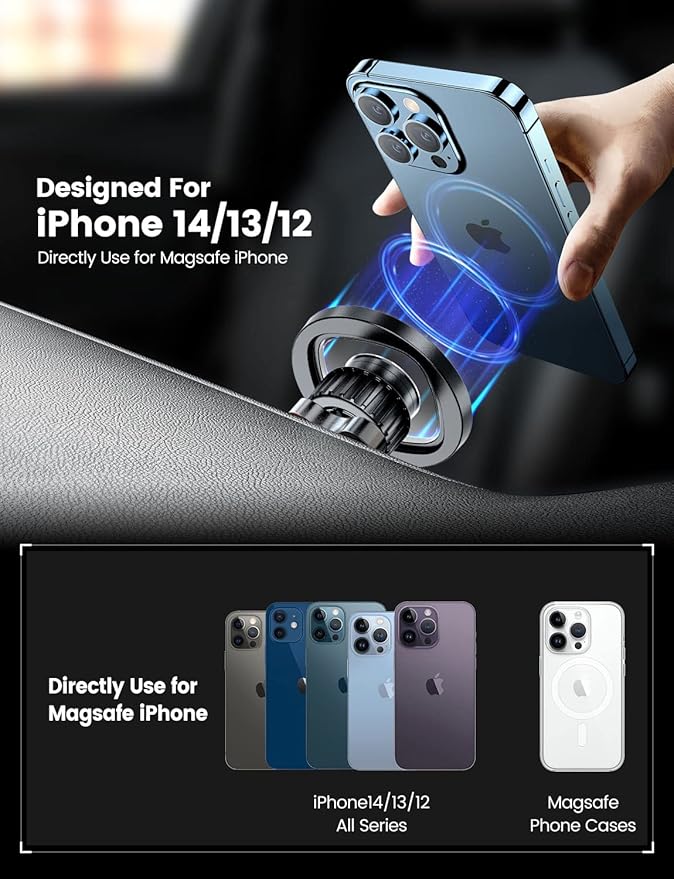 - 👍【Designed For iPhone 16/ 15/ 14/ 13】: 2023 eSamcore Magsafe Car Mount - the ultimate solution for iPhone 16, iPhone 15, and iPhone 14 users who are always on the go! Thanks to its powerful magnet, this car magnetic phone mount makes it easy to dock and undock your iPhone 14 Pro Max in seconds, allowing you to keep your eyes safely on the road at all times. ❤️️For Android phones please stick the extra Magsafe ring included.❤️️