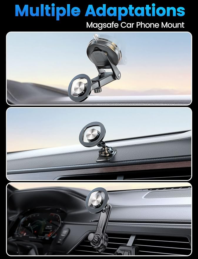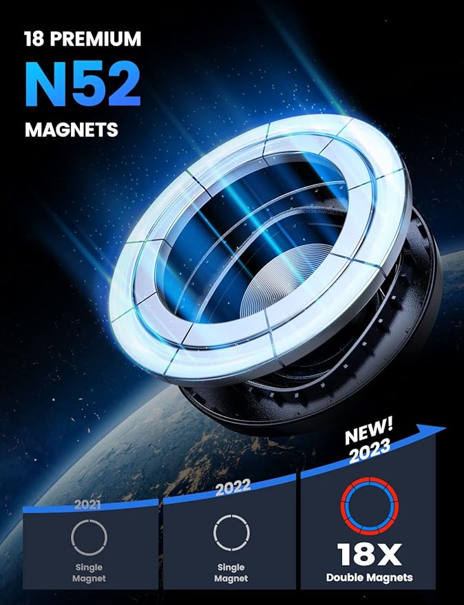 - 👍【High-strength N52 Magnets】This powerful magsafe car mount uses the latest 18 PCS N52 to keep your iPhone securely in place, no matter how bumpy the road gets. With the inclusion of ultra-strong magnets, our magnetic car mount head can easily support the weight of 10 iPhone 14 Pro Max devices.