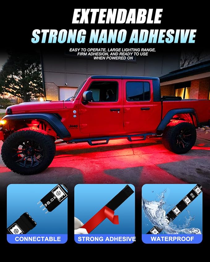 - 【Connectable】--- We added the connector at the end of the 12”car led strip lights, you can extend the length of the led strip as you needed, just plug and play and come with 100cm 22awg connect wire,you don't need to worry about connecting cables that are too short and need extra cables