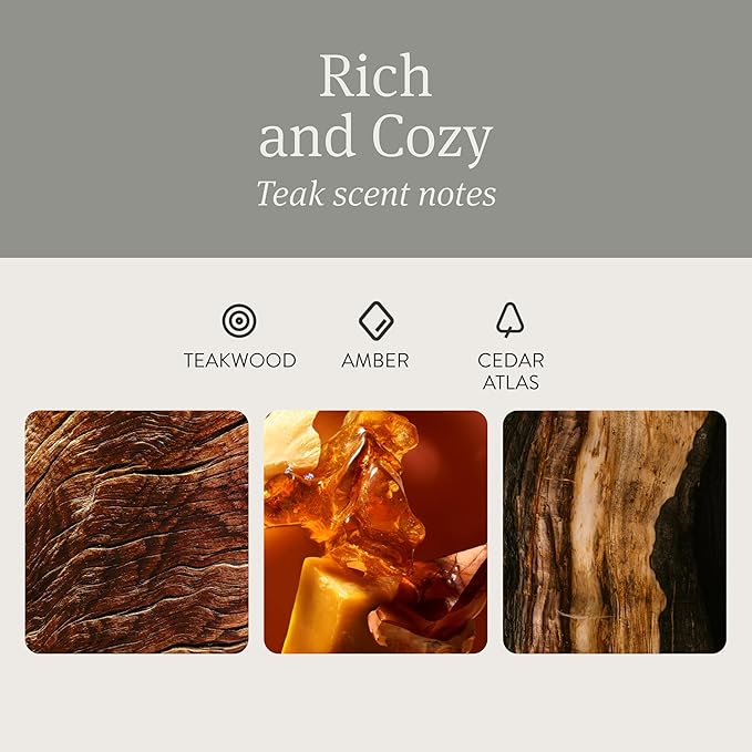 - MADE IN THE USA: Made of an organic stone blend specifically formulated for strong, even scent distribution all month long. Magnetized to fit perfectly on your car visor with our metal clip. Our Teak scent is reminiscent of fresh rain, with notes of Amber, cedar & teakwood