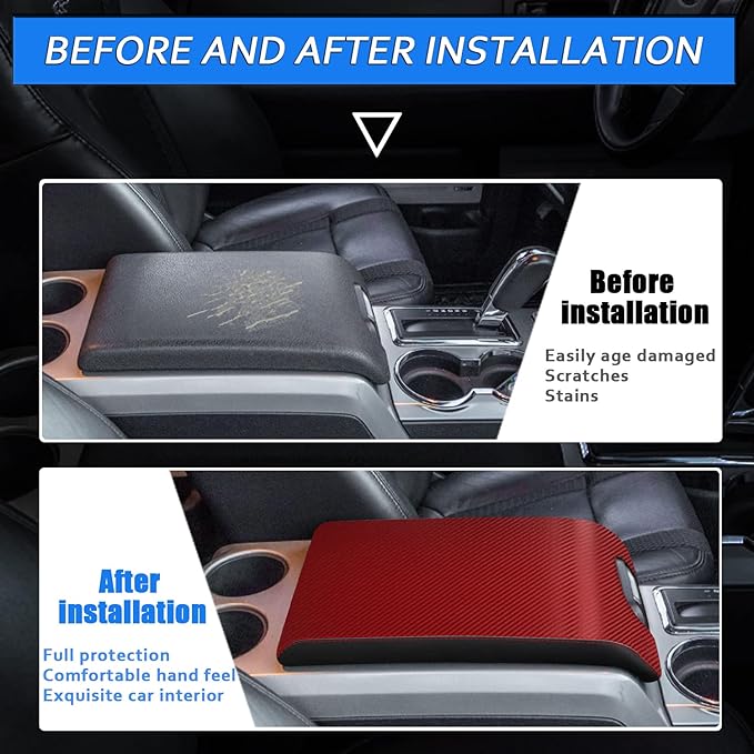 - 【Protection device】 All-round design, comprehensive protection of your console armrest. Cover the existing scratches and cracks, prevent the original car from being worn and scratched, protect the original car from coffee, dust, stains, etc, and the paws of pets are not afraid. Enrich the style and appearance of your car, and make your car more refined and personalized.