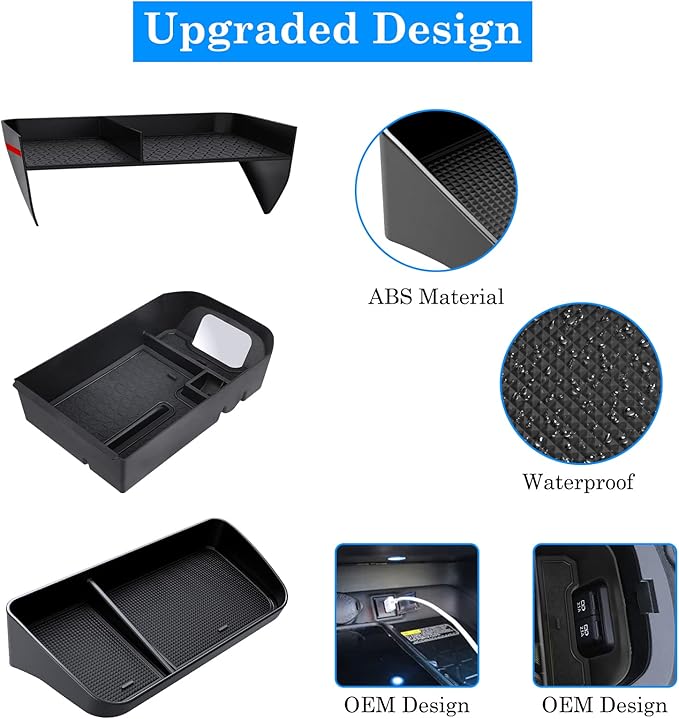 - 【ABS Material】Theonsole organizer tray set is made of premium ABS material, with a no-slip and removable design. The textured rubber tray liners prevent items from sliding and rattling in the tray.