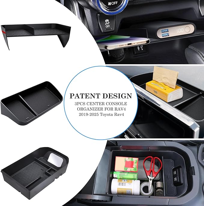 - 【Upgraded Design]】Based on the center console design of RAV4, the console organizer will not obstruct the USB area, you can use of the DC outlet and USB outlet normally.