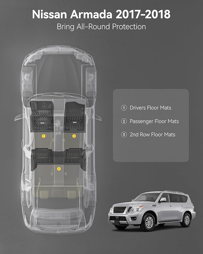 - ALL WEATHER AND STURDY: These sturdy nissan armada floor mats or cargo tray are easy to install and can be used all weather, which are stain-resistant, waterproof and anti-slip, preventing your carpet from rain, slush, snow, mud and protect your car during a typical winter or summer.