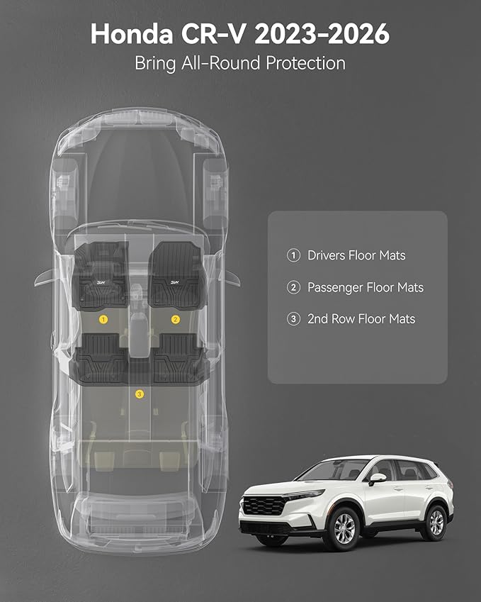 - PERFECT FIT: Custom fit design for Honda CR-V (Include Hybrid/CRV FCEV/Sport/Sport Hybrid/Sport Touring Hybrid/EX/EX-L/LX), edge to edge for maximum coverage and protection with TPE (thermoplastic elastomer) material which ensures your car more strength, resilience, durability and elasticity.