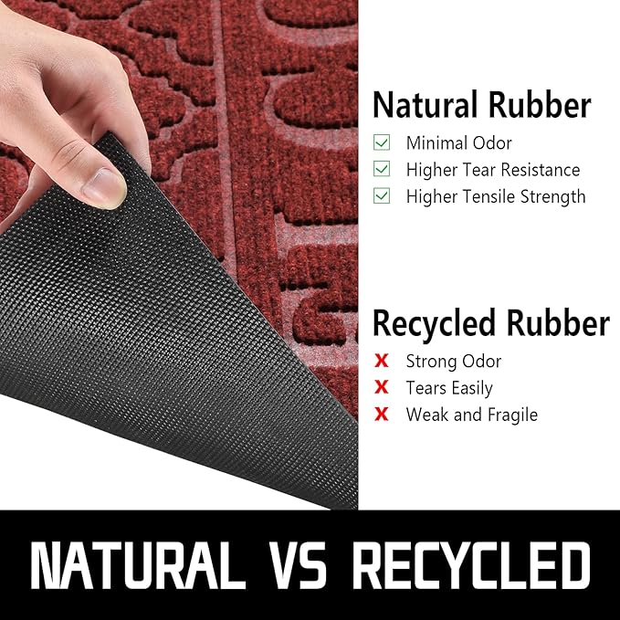 - 【Non Slip Rubber Backing】:Yimobra heavy-duty outdoor door mat features a natural rubber non-slip backing that provides a secure grip, tightly adhering to the floor and delivering excellent anti-slip performance. Whether it's a smooth floor, tiles, or wooden flooring, it effectively prevents the doormat from sliding. The reinforced thick rubber border around the edges enhances stability, so you don't have to worry about slipping even with sudden impacts