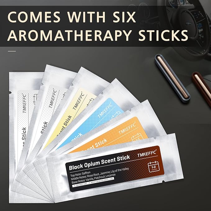 - [Includes 6 Refill Sticks – 4 Scents + 2 DIY] - Comes with 4 long-lasting sticks: Tangerine Cologne, Starligh Orange, Black & Ocean Flavor. Plus, 2 blank sticks let you DIY with your favorite essential or fragrance oils—ideal for custom aromatherapy on the go.