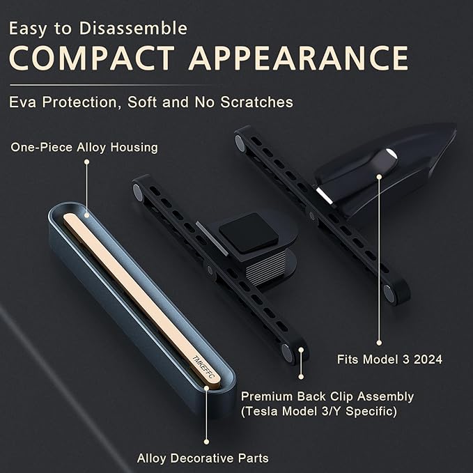 - [Alloy Vent Clip, Sleek & Secure] - Crafted from premium alloy in a sleek blue-silver finish, the mini diffuser features a strong back clip that keeps it securely attached to the vent—even during bumpy rides. Modern, understated, and made for Tesla.