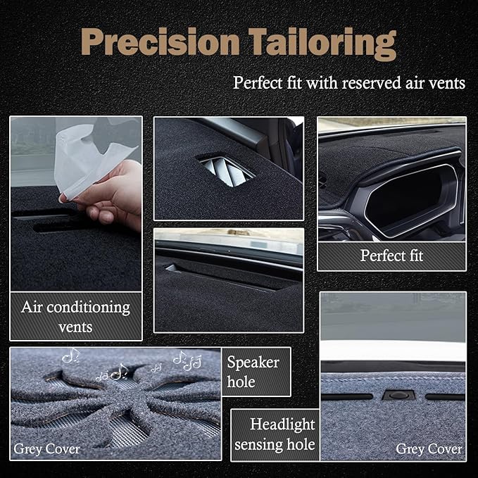 - ๐๐๐ใCustomized Designใ- Laser cutting, customized car mold opening, perfect fit, and the fine stitching is suitable for the arc of the original car. All defrost and AC vents are pre-cut. The back of dashboard cover mat is made of non-slip silicone particles, also equipped with Velcro, which further strengthens the fixing.