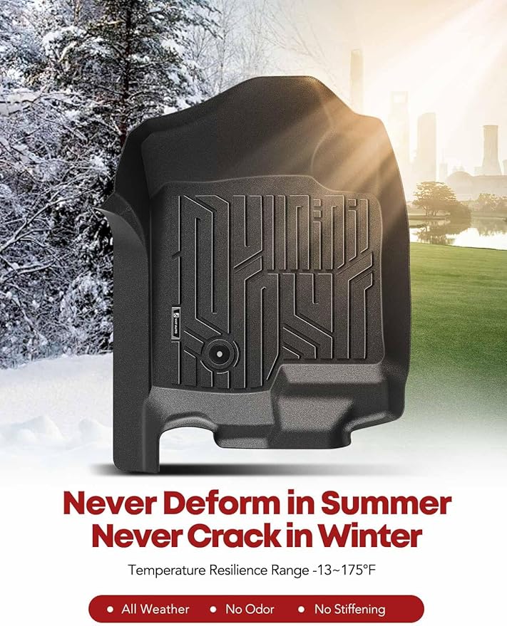 - Comprehensive Protection: The truck floor mats has raised edges to stow liquids and debris, keeping your car clean; 3D scanning technology make floor liners perfectly fit. The anti-slip design ensures that the mats will not move during driving