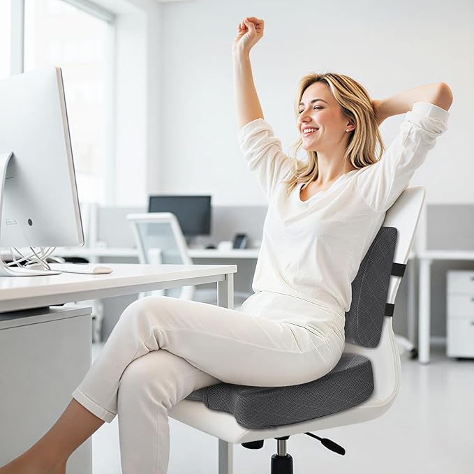 - Multiple Uses: The chair pads supports the recovery of spinal problems such as lower back problems, disc herniation, coccyx injury, sciatica, etc. Large size (18.11''x14.17''x3.15'') fits all types of chairs, great for office, home desk chairs, car seats, gaming chairs, mobility scooter, automotive seat, wheelchairs. Also suitable for travel, sporting events, or pregnancy