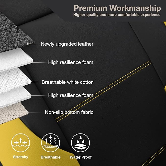 GIANT PANDA Front Car Seat Cover for Jeep, Leather Bucket Seat Covers Custom Fit Jeep Grand Cherokee Wrangler Compass Gladiator Wagoneer Renegade Liberty Patriot (Yellow+Black)