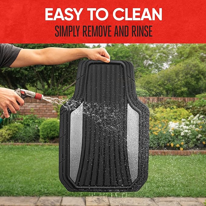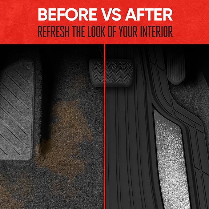- HEAVY-DUTY RUBBER CONSTRUCTION – Built from premium rubber floor mats material, these auto accessories are tough, flexible, and engineered to handle dirt, water, and heavy foot traffic without cracking or curling.