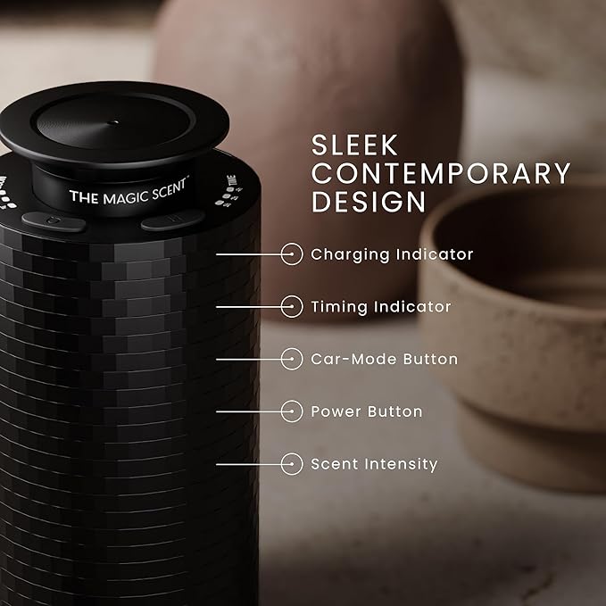 The Magic Scent Mini USB Car Diffuser - Waterless Scent Machine for Home & On-The-Go - Intensity Control & Timer - Waterless Oil Diffuser - Rechargeable Car Air Freshener Diffuser up to 400 sq. ft.