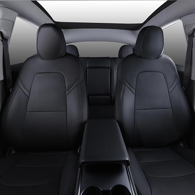 Suitable for Tesla Model Y Seat Covers, Waterproof Faux Leather Car Seat Covers Full Set for Tesla Model Y 2020 2021 2022 2023 2024 (Black)
