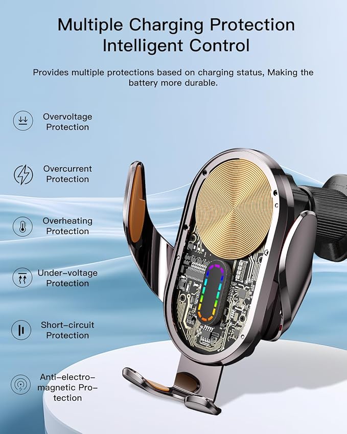 - Automatic Locking Function: The phone car holder automatically adjusts to the position of your phone's coil, ensuring a secure hold and starting charging when you place your phone into the holder. Even when not connected to power, the phone stand can be easily opened or closed using the button for convenient and safe use