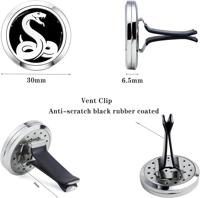 30mm Car Essential Oil Diffuser Vent Clips Air Freshener Vent Clip Aromatherapy Car Accessories 10 Felt Pads for Gift Women (Snake)