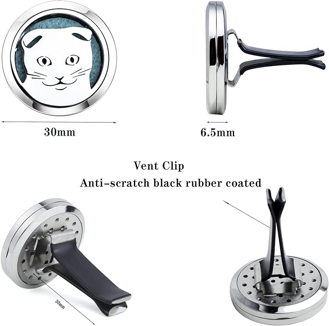 30mm Car Essential Oil Diffuser Vent Clips Air Freshener Vent Clip Aromatherapy Car Accessories 10 Felt Pads for Gift Women (Cat)