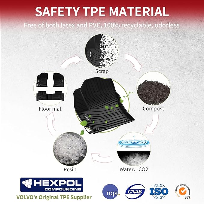 - 100% TPE: The floor mats for Toyota Corolla 2020-2026(not for Corolla Cross or hatchback) are made from non-toxic, odorless TPE material, which is recyclable. Their unique combination of durability and flexibility allows them to withstand heavy loads without deformation while maintaining elasticity to return to their original shape, ensuring long-lasting performance. Therefore, the Toyota Corolla 2025 floor mats can easily withstand daily foot traffic and friction from sand and gravel.
