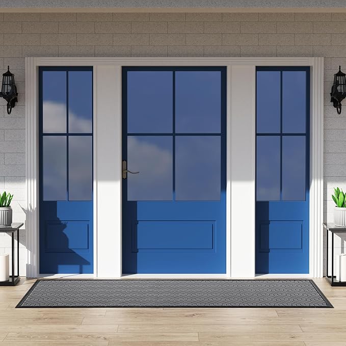 - Superior Dust Trapping & Waterproof: Featured deep Y-pattern grooves, the front door mat effectively scrapes off mud, dust and debris from shoe soles, keeping dirt outside your home. Made of high-quality polypropylene, this mat is waterproof and holds up perfectly even after rain. Its strong structure withstands heavy foot traffic without losing shape or functionality