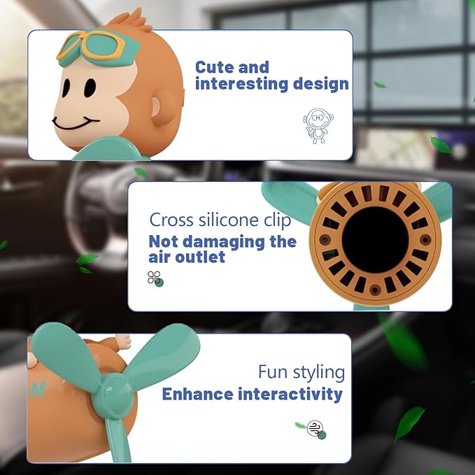 - 【Ingenious and Innovative Design】The funny fan design is inspired by vintage propeller driven aircraft; When your car vents open, the air outlet will drive the propeller and the fragrance will be evenly blown in every corner of the car, the design is very novel and practical.