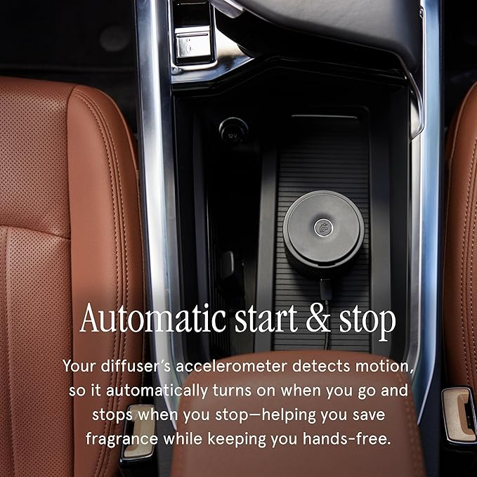- 30 Days of Car Fragrance: Your Pura Car diffuser’s accelerometer detects motion, so it automatically turns on when you go and stops when you stop—helping you save fragrance and keeping you hands-free