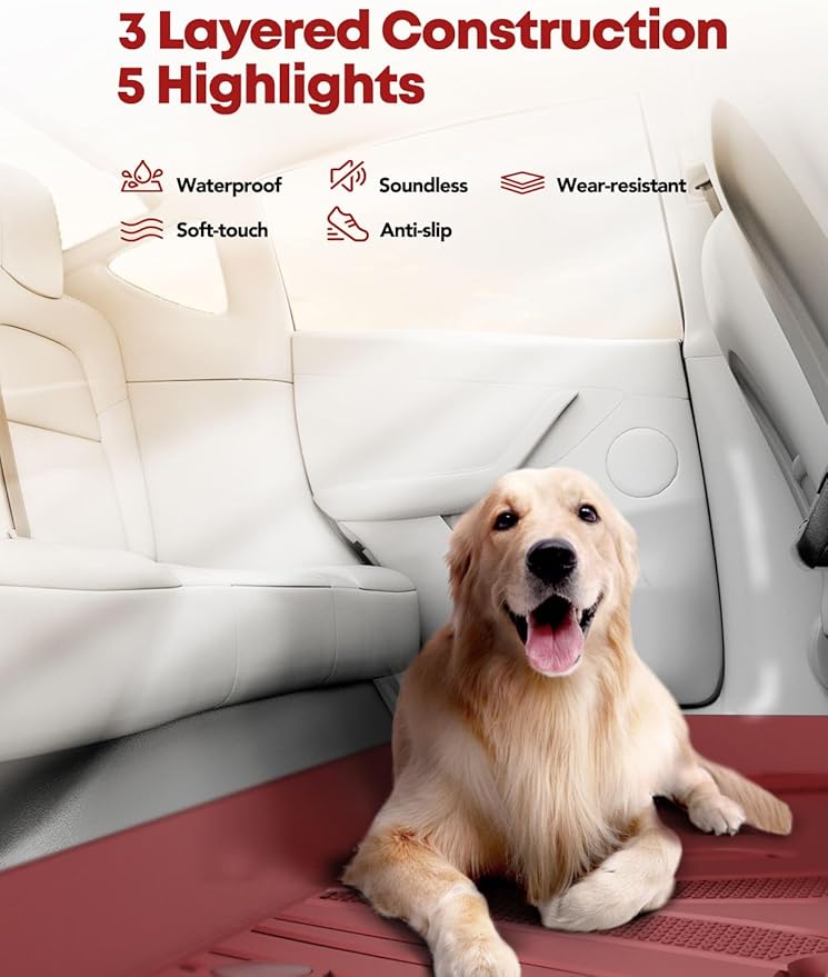 YHTAUTO Custom Fit Red Floor Mats for Tesla Model 3 2020 2019 2018 2017, All Weather TPE Car Carpet, Front Rear Trunk Storage Cargo Liner, Lower Storage Mat, Anti-Slip Waterproof Orderless, Set of 6